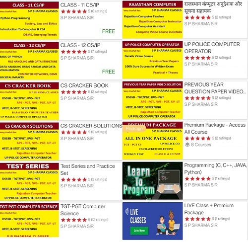 SPSC - S P SHARMA CLASSES is a leading and authentic platform for Computer Science Education. We provides recorded videos, Live classes, Test Series, Practice Set and Books.