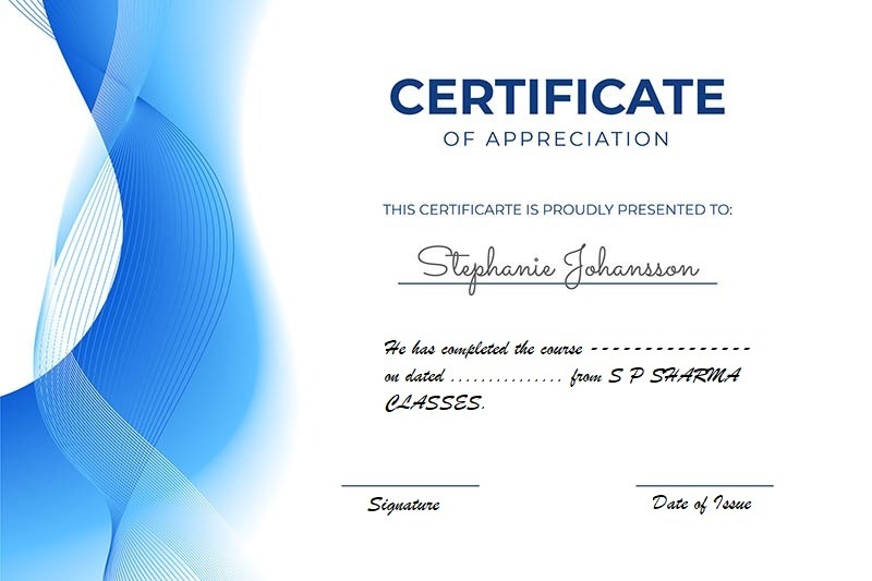 When you complete your course and spend min 80% time of your course duration on learning you will get a certificate from S P SHARMA CLASSES. After each course you will also have a 100 Marks question paper in which you should score min 70%